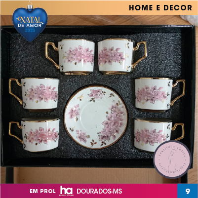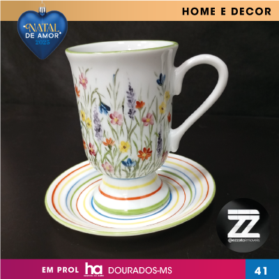XICARA E PIRES EM PORCELANA PINTADO À MÃO