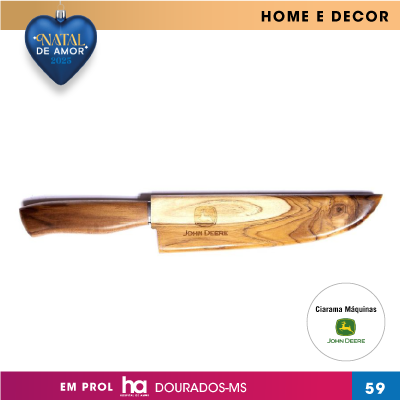FACA DE CHURRASCO PREMIUN EM INOX E CAPA EM MADEIRA JOHN DEERE