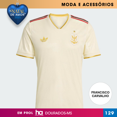 CAMISETA OFICIAL FLAMENGO ADIDAS BEGE MASCULINA TAMANHO M