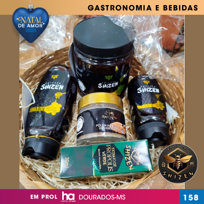CESTA DE PRODUTOS APÍCOLA SHIZEN – MEL 1KG, MEL 500G, MEL 300G, PÓLEM DESIDRATADO, EXTRATO DE PRÓPOLIS